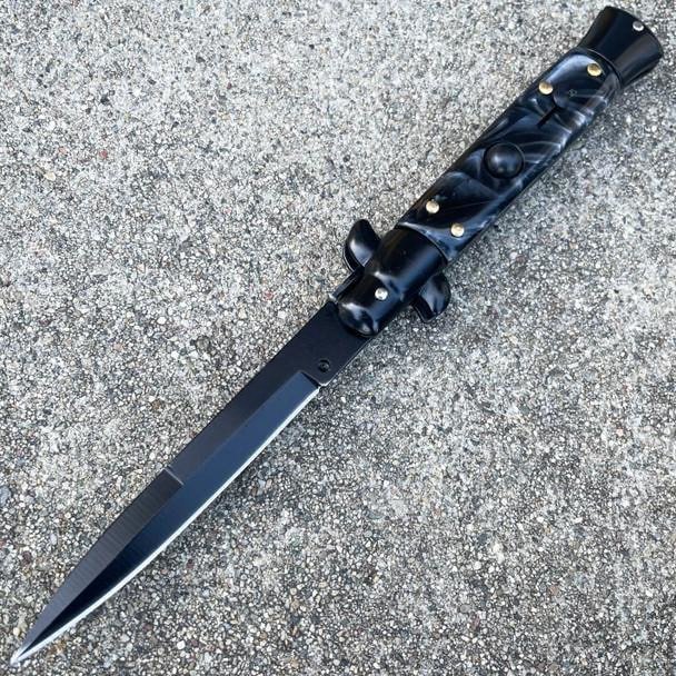 8,75 Zoll schwarzes italienisches Stiletto-Taschenmesser mit Schalter, schwarze Perle