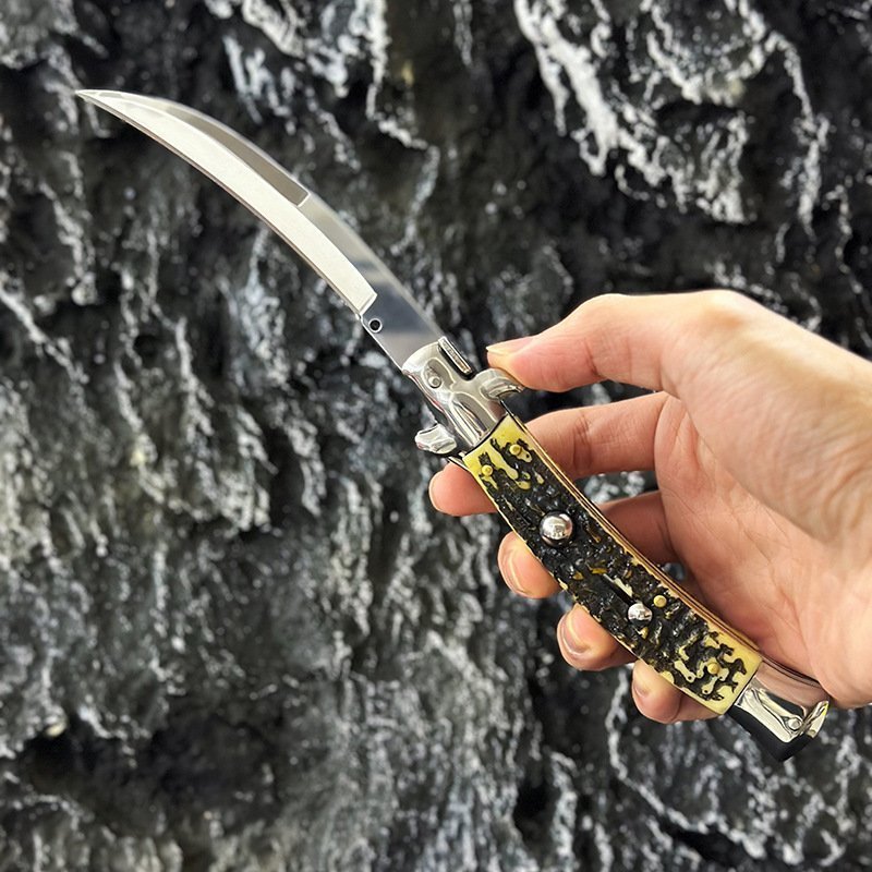 9 Zoll Faux Hirschknochen Gebogene Klinge Springmesser Stiletto Springmesser