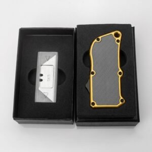 Description: This small Out The Front utility knife fits in a pocket, removes the replacement blade, and comes in a beautiful gift box. It has an excellent safety device to keep the blade from dropping in any situation, and the handle is made of carbon fiber material, making it smoother in the hand.